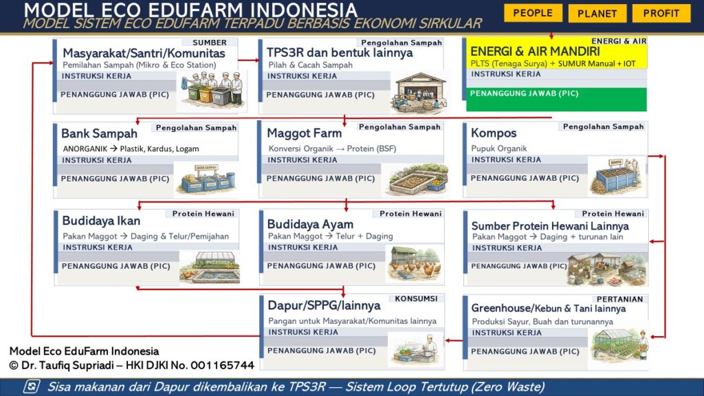 “Model Eco EduFarm Indonesia: Model Sistem Eco EduFarm Terpadu Berbasis Ekonomi Sirkular untuk Ketahanan Pangan, Lingkungan, dan Energi Komunitas.”